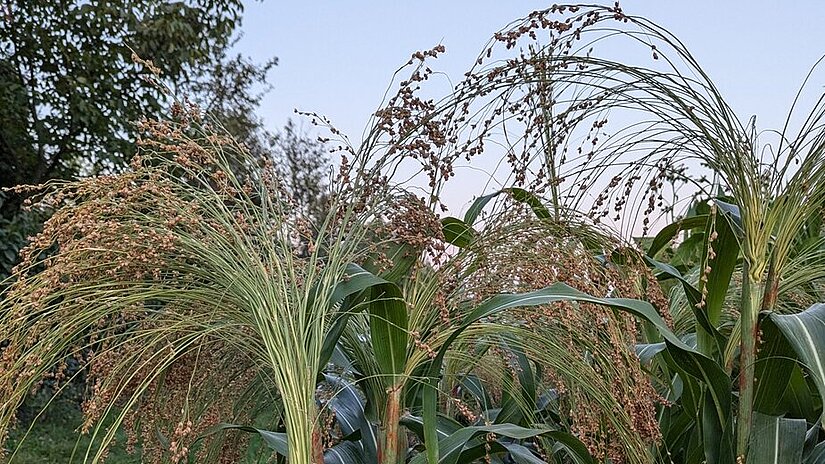 Ungarische Sorghumsorte mit ca. 1,60 Meter vergleichsweise niedrig, jedoch mit sehr lang gestreckten Fruchtrispen.