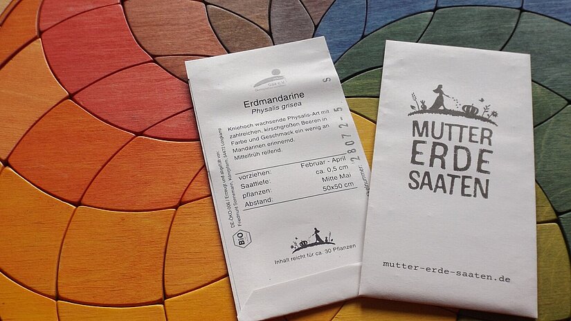Kniehoch wachsende Physalis-Art mit zahlreichen, kirschgroßen Beeren in Farbe und Geschmack ein wenig an Mandarinen erinnernd.