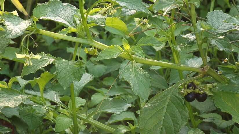 Breit ausladendes Nachtschattengewächs mit in der Reife tiefschwarzen, haselnussgroßen Beeren. Einjährige Kultur empfohlen. In milden Gegenden ist Überwintern der Wurzelstöcke mit Mulchschutz möglich.