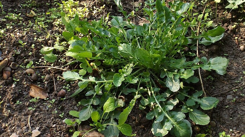 Im 1. Jahr Blattrosetten ca.15 cm im Durchmesser, Geschmack ähnlich der Brunnenkresse. Im 2. Jahr Ernte der senfähnlichen Samen.
